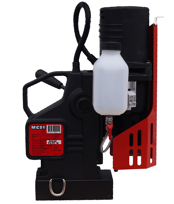 Выполнение работ на магнитных сверлильных машинах МС-51 происходит с максимальной степенью комфорта и безопасности. Обладая электронной системой плавного пуска дает возможность делать отверстия в трубах, или же осуществлять сверление внахлест. Заменяемый шлицевой хвостовик ротора, исключает дорогостоящую замену ротора при износе. Интегрирована система автоматической подачи жидкости под высоким давлением, чем обеспечивается высокая надежность и безопасность. Данная система уже идет в стандартной комплектации.