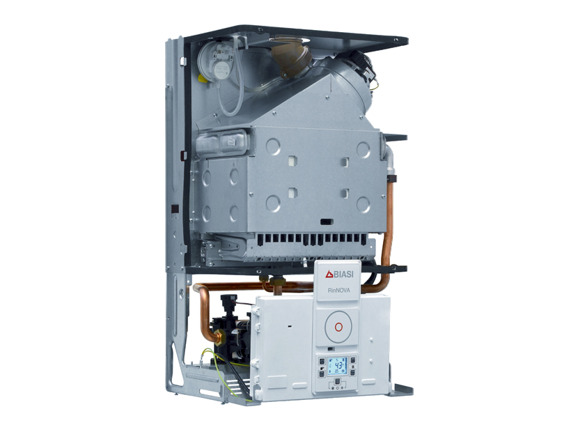RINNOVA – двухконтурный настенный газовый котел предназначен для небольших систем отопления и горячего водоснабжения. Оснащен двумя теплообменниками: первичный – медный для нагрева системы отопления и вторичный – пластинчатый изготовленный из нержавеющей стали служит для нагрева воды горячего водоснабжения.