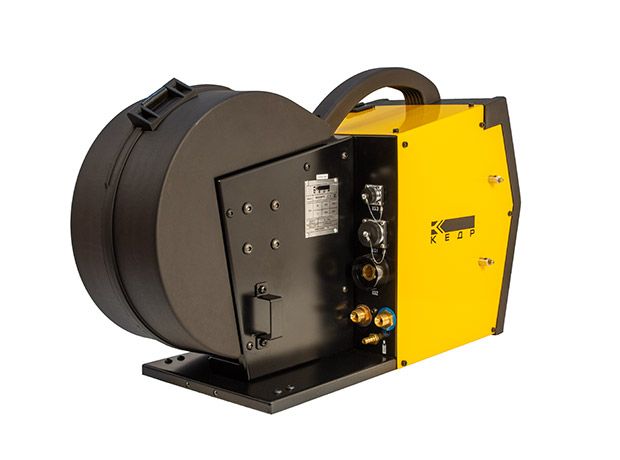 Подающий механизм имеет связь со сварочным источником питания посредством многожильного управляющего и сварочного кабелей. На устройстве подачи проволоки дублируются все органы управления сварочного источника, что позволяет осуществлять настройку всех параметров непосредственно с подающего устройства.