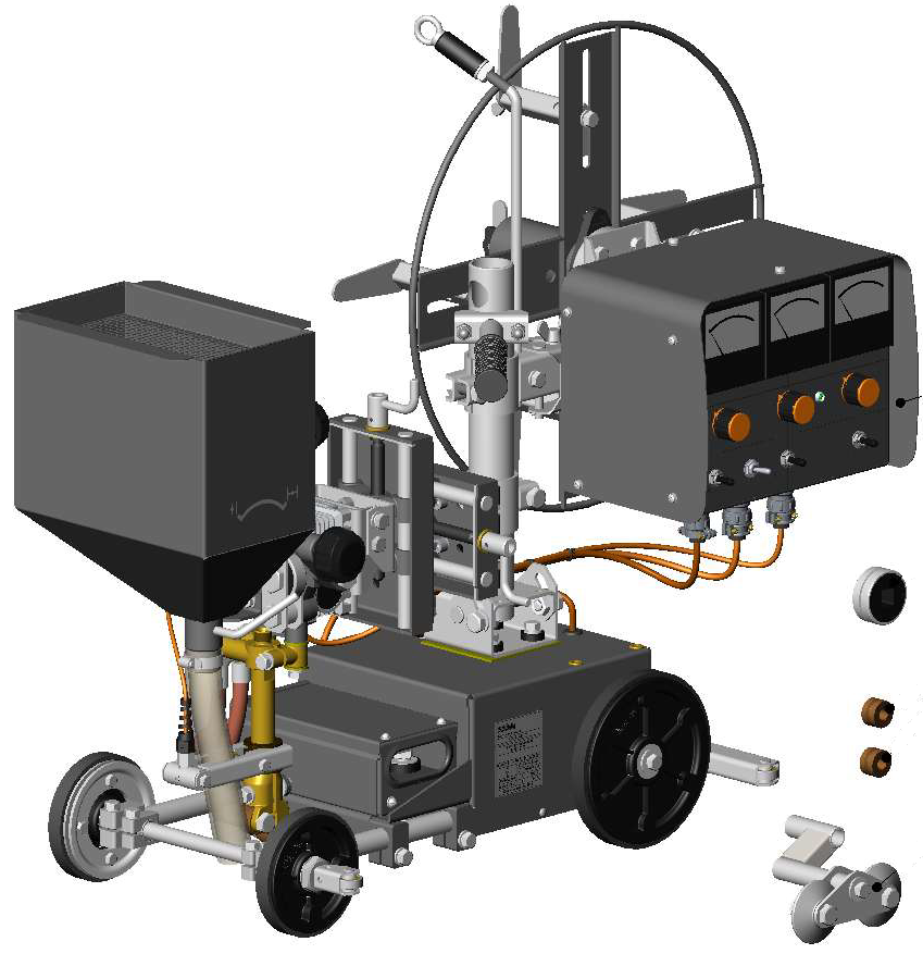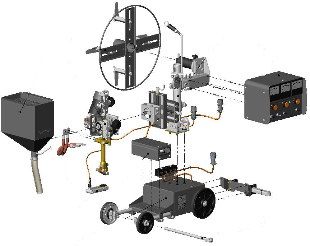 Трактор сварочный ТСФ-101 с плавным регулированием скорости подачи электродной проволоки и скорости сварки, предназначен для автоматической электродуговой сварки однопроходных и многопроходных соединений внахлестку, угловых, тавровых, а также стыковых соединений с разделкой и без разделки кромок.